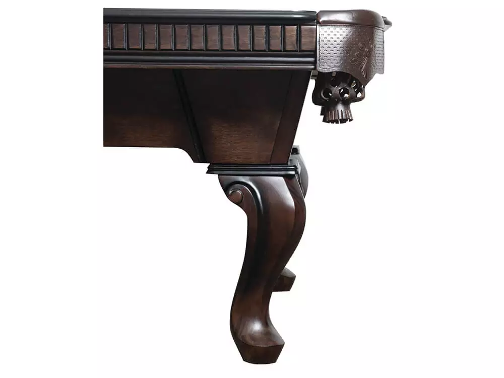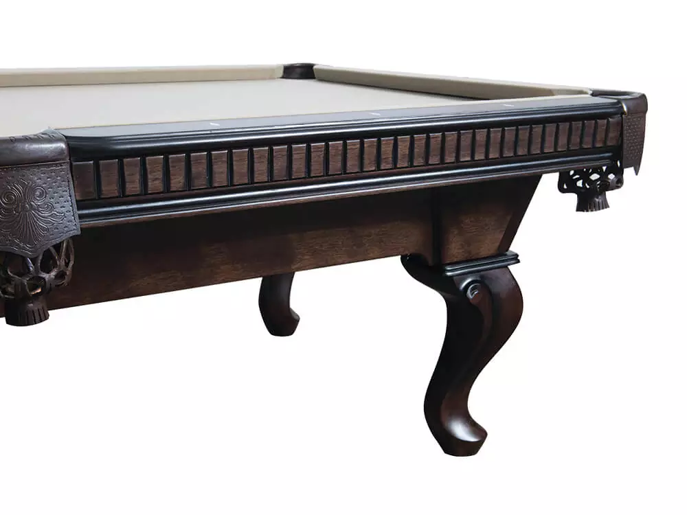 A classic-styled pool table with an arched cabinet and a choice of Ball and Claw or Queen Anne legs. The smokey gray walnut finish gives this table a traditional feel and will be a great addition to any home. *photographed with Queen Anne leg View The Cleveland Collection