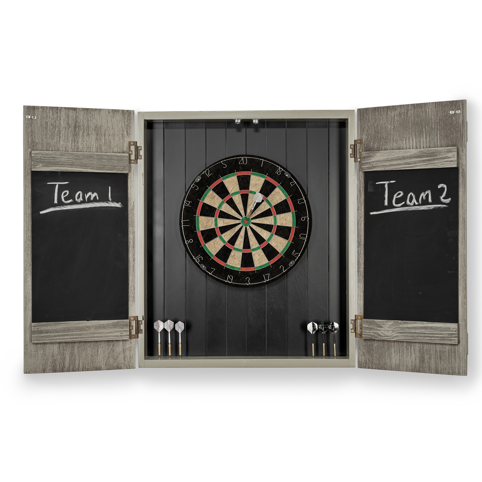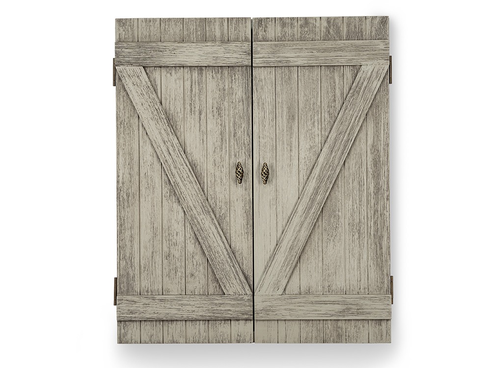 This dartboard cabinet features a rustic barndoor style made modern with a sophisticated gray finish that complements any game room. The unique barn-style doors create a unique yet subtle design and will complement the Silverton Billiard Table perfectly. It adds a softer touch into your home and forms part of the Silverton Collection. The Rustic dartboard cabinet is made of solid wood with barn-style doors. *Photos only as reference, design may differ slightly. This cabinet can also be purchased inRustic Chocolate View The Silverton Collection