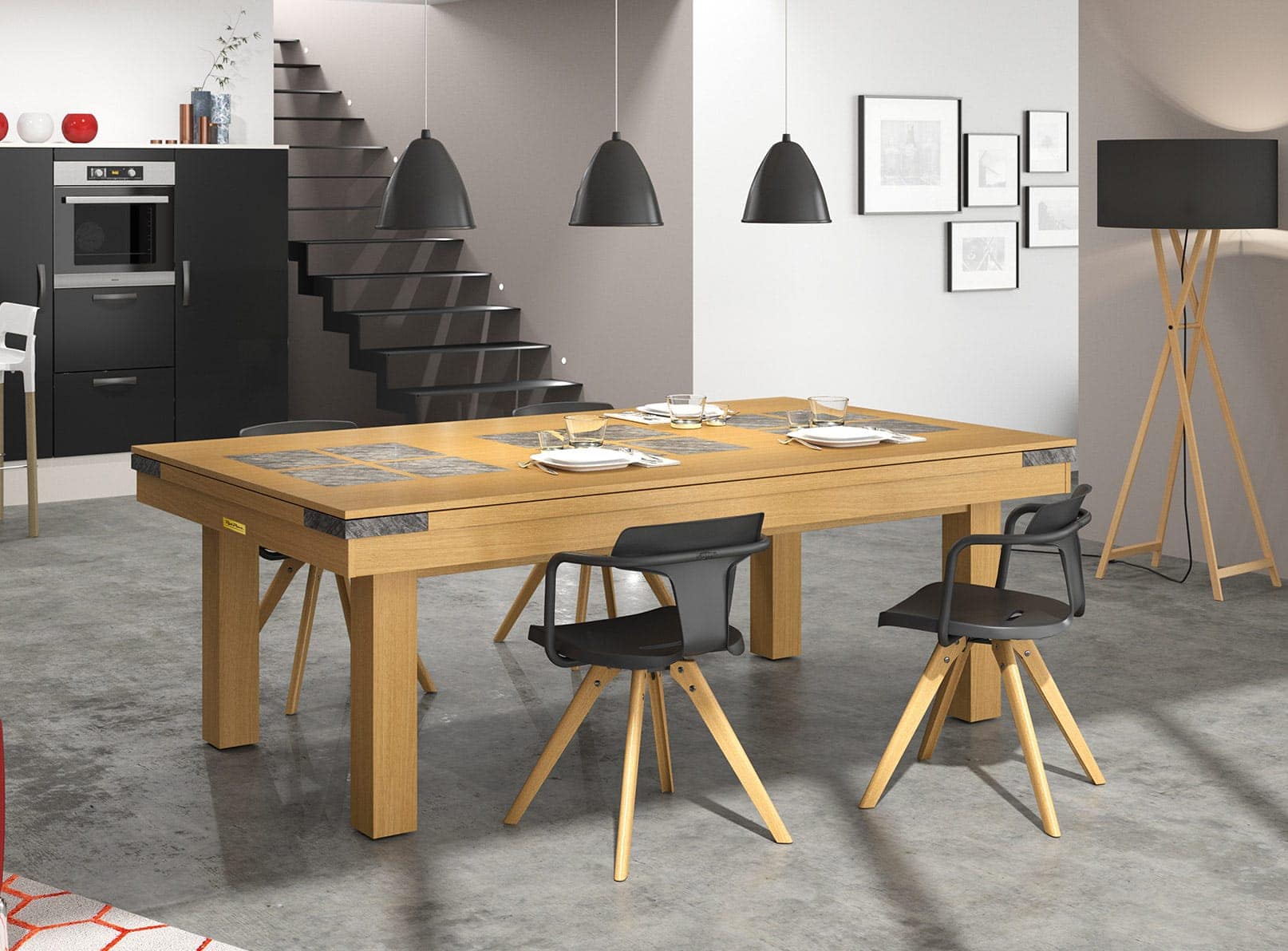 Design the pool table of your dreams, just the way you want it! Magnificentpool table that can be transformed into a table, to be personalized according to your interior: 14 wood finishes and 26 fabric colors. Check out the available finishes in the drop-down menu and see the results in pictures!